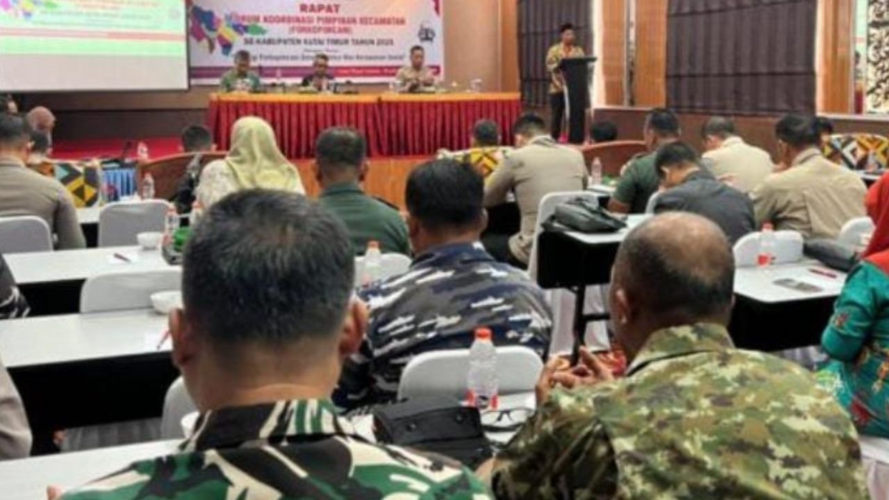 publikasikaltim.id, KUTAI TIMUR – Pemerintah Kabupaten Kutai Timur (Pemkab Kutim) melalui Badan Kesatuan Bangsa dan Politik (Kesbangpol) Kutim, menggelar Rapat Forum Koordinasi Pimpinan Kecamatan (Forkopimcam) se-Kutim tahun 2025. Kegiatan ini berlangsung di Tuang Pelangi Hotel Royal Victoria Sangatta, Kamis (11/12/2025).